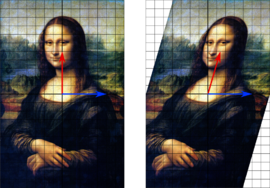 тогда разумно представить результат преобразования вектора \(\vec a\) как работу, которую произвели над вектором \(\vec a\) по каждому направлению фиксированных координатных осей \(x\) и \(y\), "растягивая"его по направлениям координатных осей \(x\) и \(y\) при преобразовании базиса (будем применять введённое ранее скалярное произведение векторов):