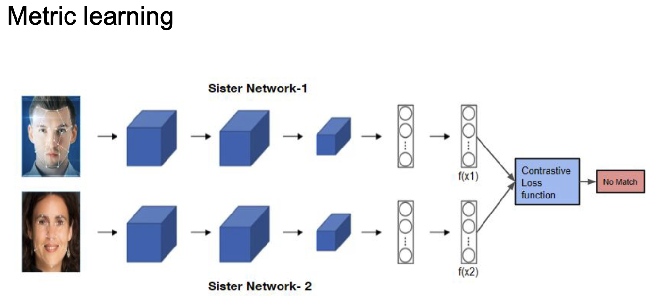В московском метро есть системы для распознавания лиц. Людей в Москве огромное количество, поэтому нейронные сети не решают задачу классификации, иначе output вектор был бы огромной размерности, и меток при обучении тоже будет очень много. Тем не менее иногда хочется разыскивать людей или еще что. Мы можем сравнивать людей с фотографиями в базе. Необходимо уметь отвечать на вопрос -- являются ли эти два изображения представителями одного класса?.