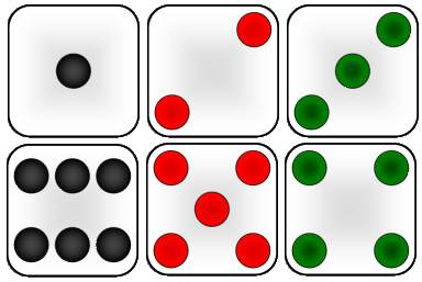 | Пространство элементарных событий \(\Omega\) в случае бросания игральной кости \(\Omega=\{0, 1, 2, 3, 4, 5, 6\}\) |