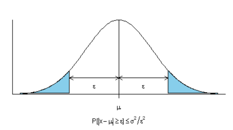 В частности, случайная величина с конечной дисперсией отклоняется от среднего больше, чем на 2 стандартных отклонения, с вероятностью меньше \(\frac{1}{4}\), на 3 стандартных отклонения с вероятностью меньше \(\frac{1}{9}\).