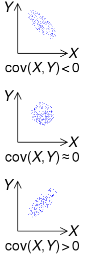 | Знак ковариации двух случайных величин \(X\) и \(Y\) |