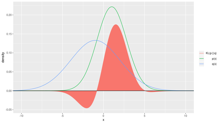 | Пример распределения \(p\) и \(q\) и их \(KL\)-дивергенции |