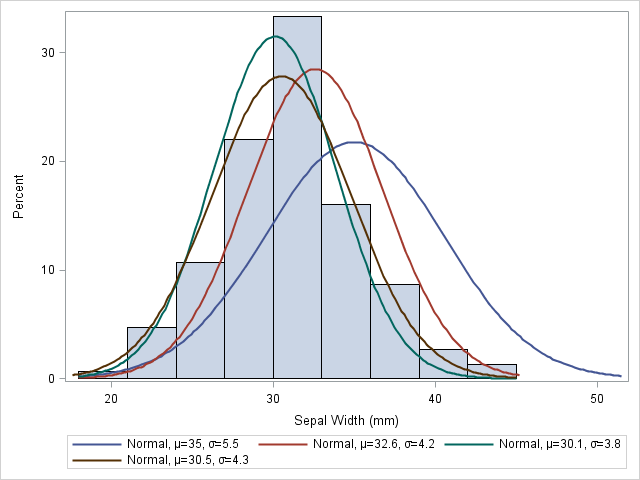 | Пример нахождения параметров для нормального распределения для описания эксперимента |